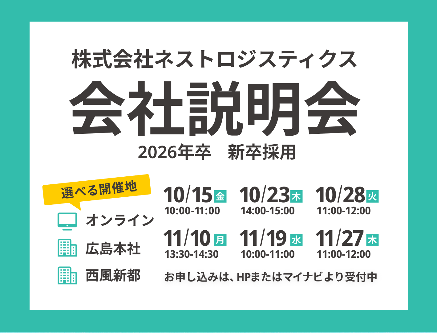 ネストロジスティクスでは、会社説明会を随時開しております。